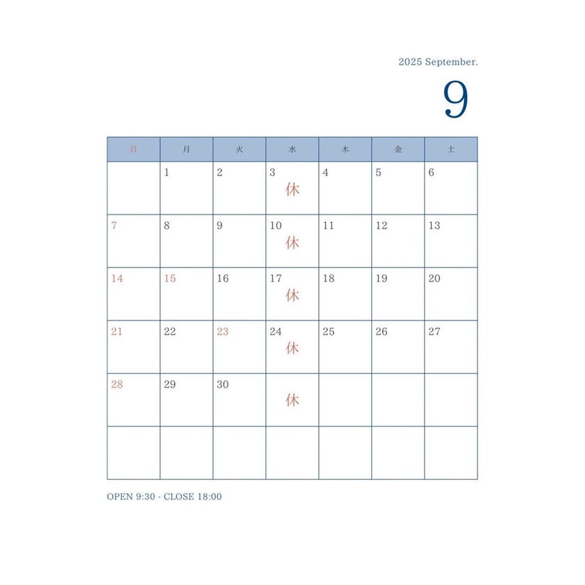 9月営業日のお知らせ